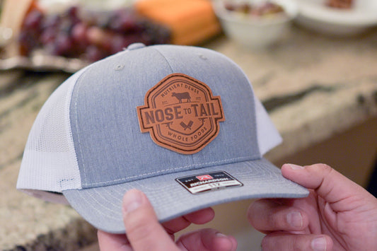 Nose to Tail Leather Patch Hat | Richardson Trucker in Grey-White